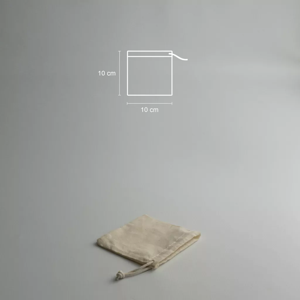 Bolsa cosida en lienzo 100% algodón crudo.