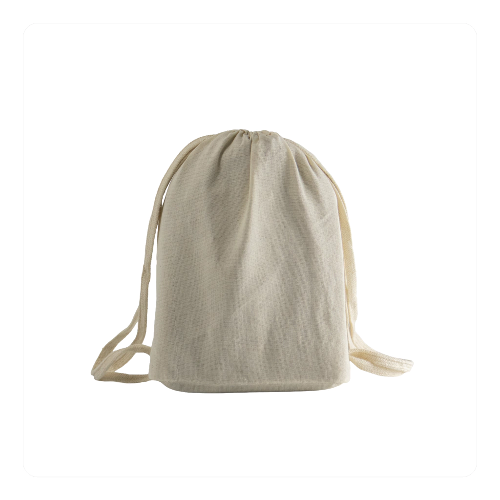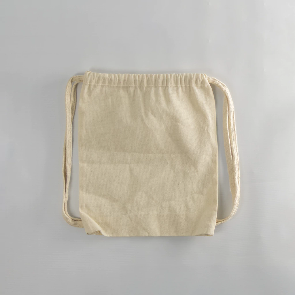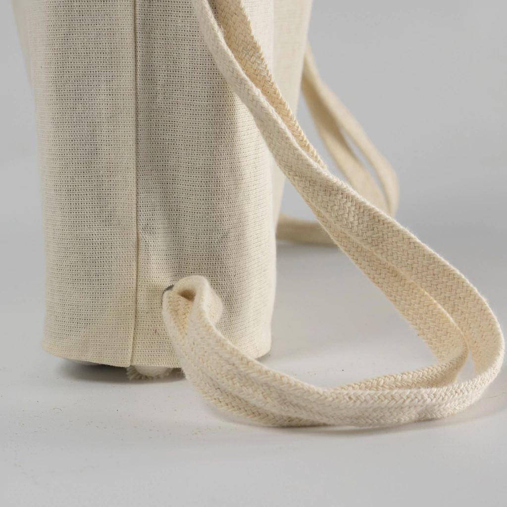 Mochila cosida en lienzo 100% algodón crudo.
