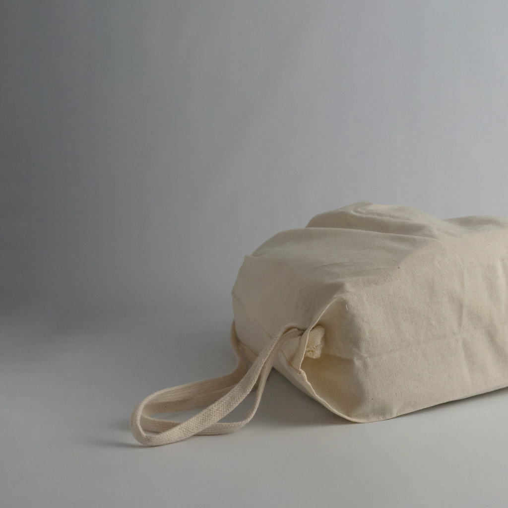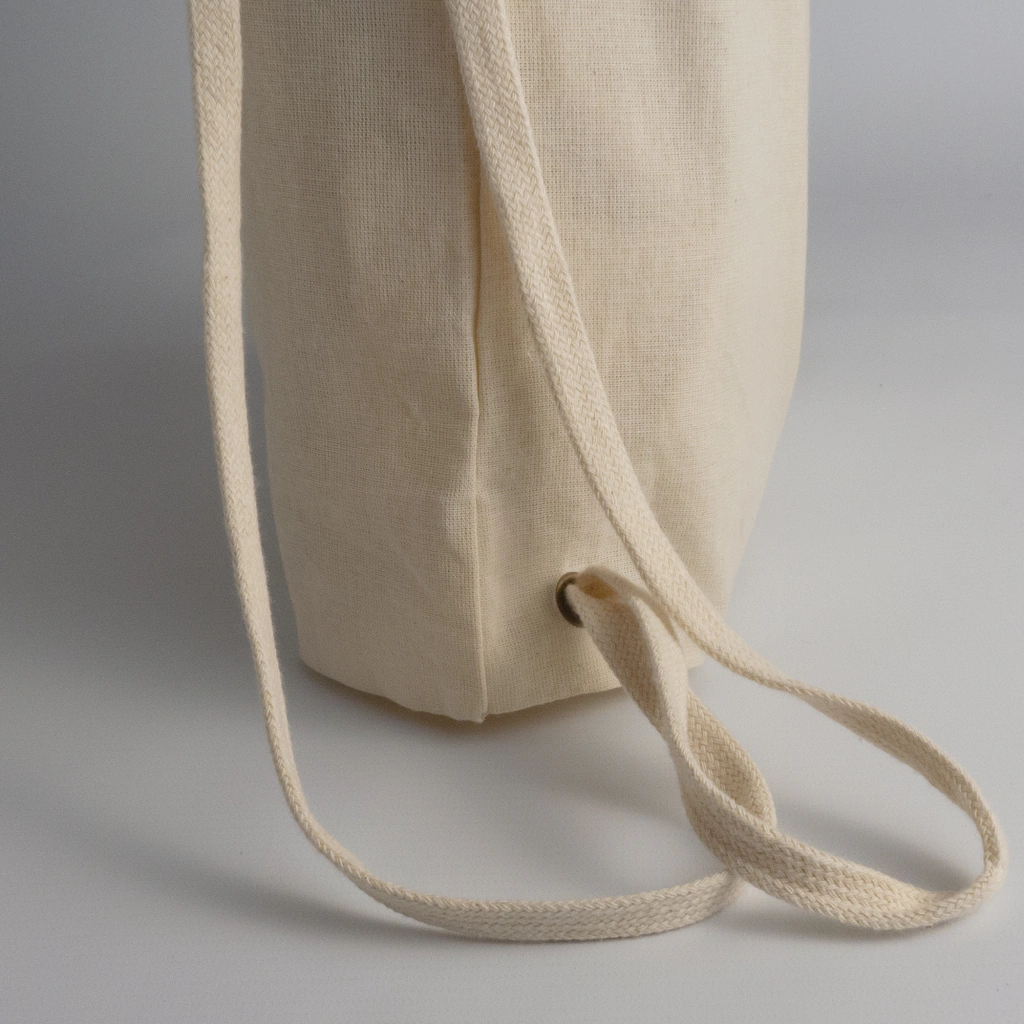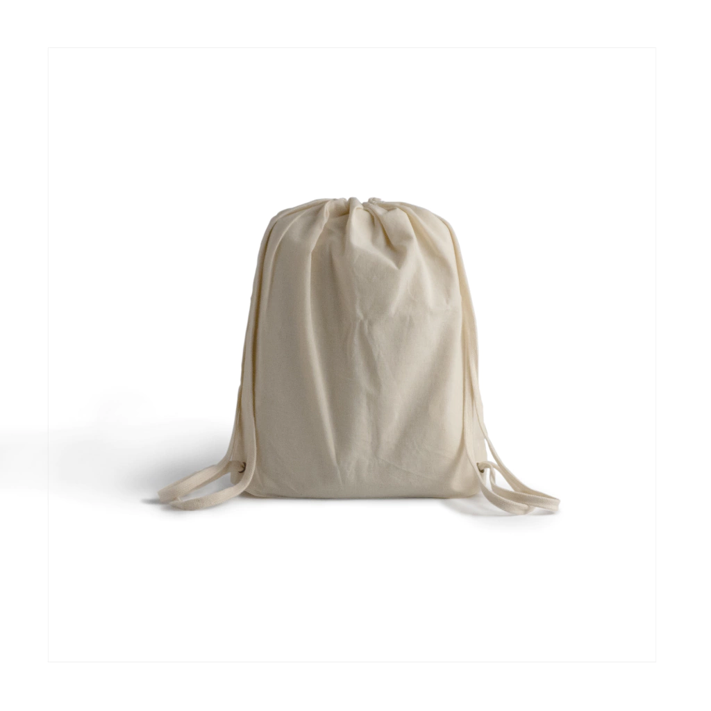 Mochila cosida en lienzo 100% algodón crudo.